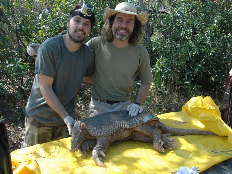 “Vandaag alles gehoord over het Giant Armadillo project bij Baia das Pedras. Wisten jullie überhaupt dat er zoiets als een reuzengordeldier bestond? Een enorm dier dat 1,5 m lang en 35 kg zwaar kan worden, maar vrijwel nooit wordt gespot. Hij bouwt dan ook enorme holen tot wel 4 meter onder de grond en vele andere dieren van de Pantanal zijn daarvan afhankelijk. Het gebied van deze lodge is de basis van dit project. Zelfs David Attenborough was hier al op bezoek om het dier te filmen. Er zijn 36 reuzengordeldieren geteld op deze ranch.”