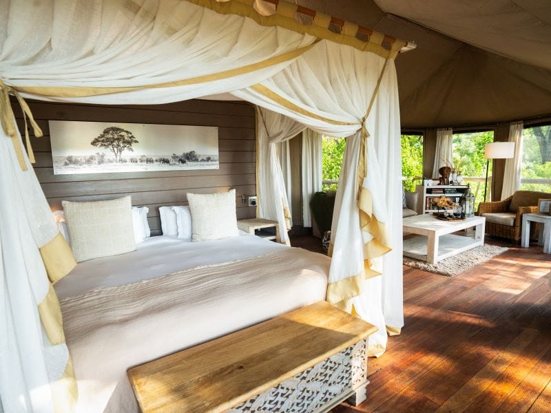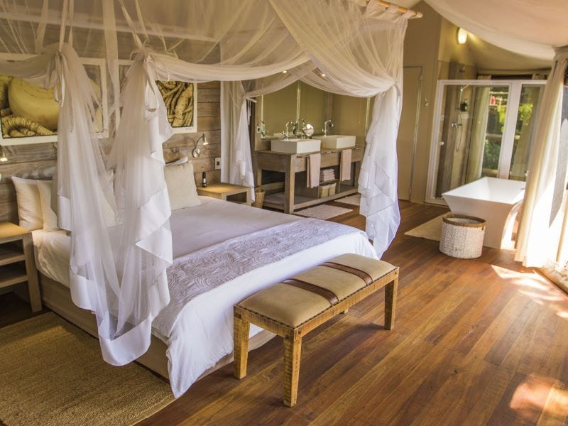 Dit luxe tentenkamp is hoog in de boomtoppen gebouwd, zodat het de doortocht van migrerende wilde dieren beneden niet verstoort. Vanaf de verhoogde uitkijkdecks heeft u prachtig zicht over de omgeving en ’s avonds is het de plek voor een diner onder de sterrenhemel. De lodge beschikt over tien luxueuze tentsuites, elegant ingericht en volledig open te stellen voor een ultieme natuurbeleving.