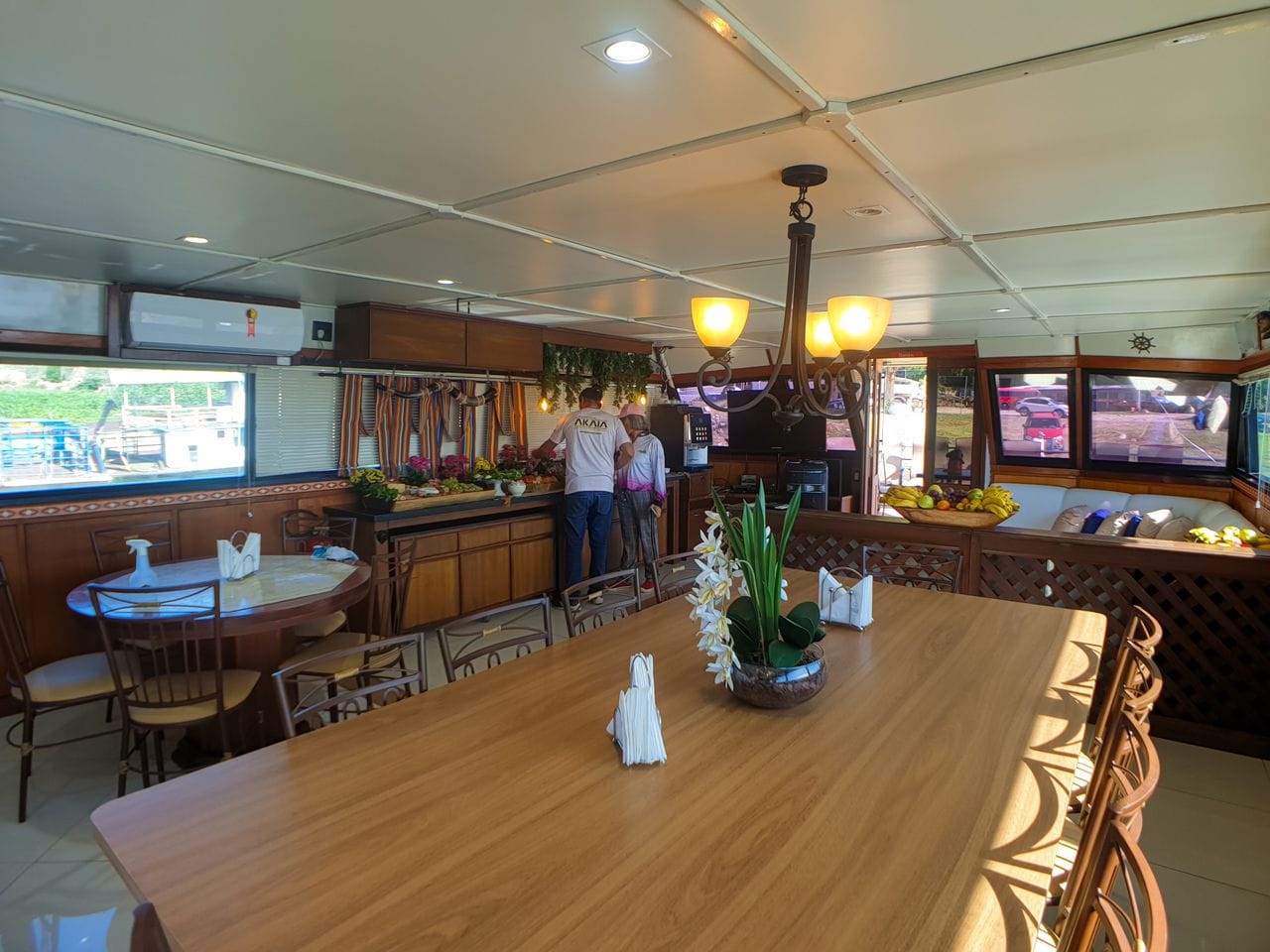 U verblijft deze 6 dagen op onze houseboat in de Pantanal met 7 kleine goedverzorgde cabines met eigen badkamer: