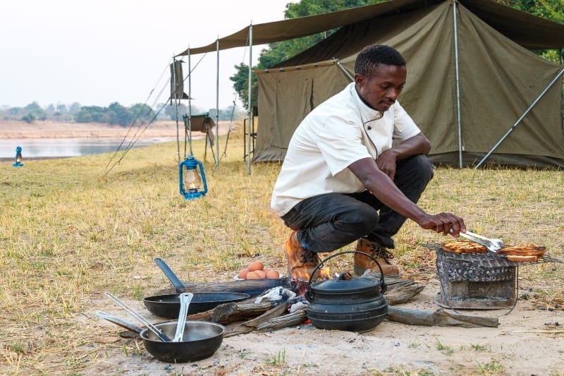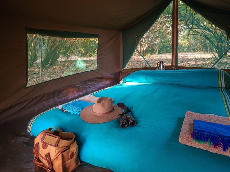 Alle wandelsafari’s worden begeleid door een ervaren naturalist en u wordt vergezeld door een gewapende scout. In het hart van het park staat een comfortabel kamp voor u klaar. Een goed uitgeruste tent waar u heerlijk in en uit kunt lopen. De douche bevindt zich onder een boom en het toilet is rustikaal met privacy. Er is genoeg tijd om bij te komen en te genieten van een ontspannen siësta en een lekker kopje thee voordat u weer op weg gaat. Bij terugkomst in de avonden kunt u de prachtige zonsondergang aanschouwen met een diner onder de sterrenhemel.